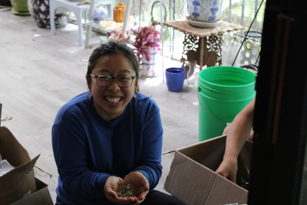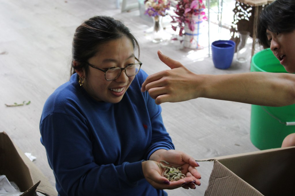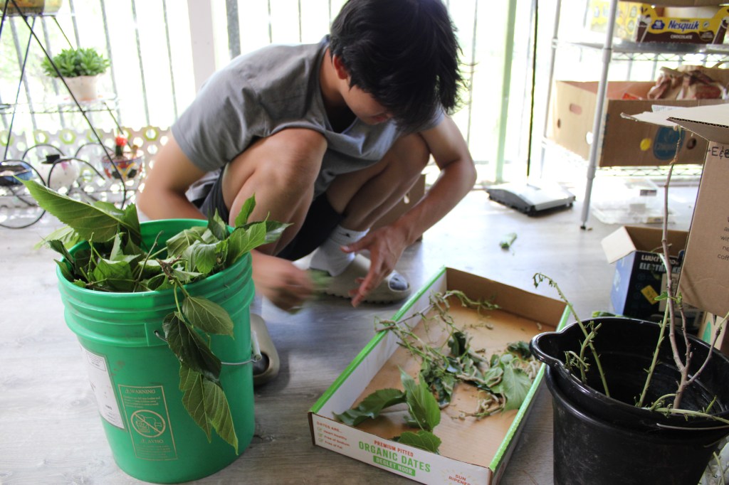 The sheer amount of silkworms housed in a cardboard box left my brother and I curious.