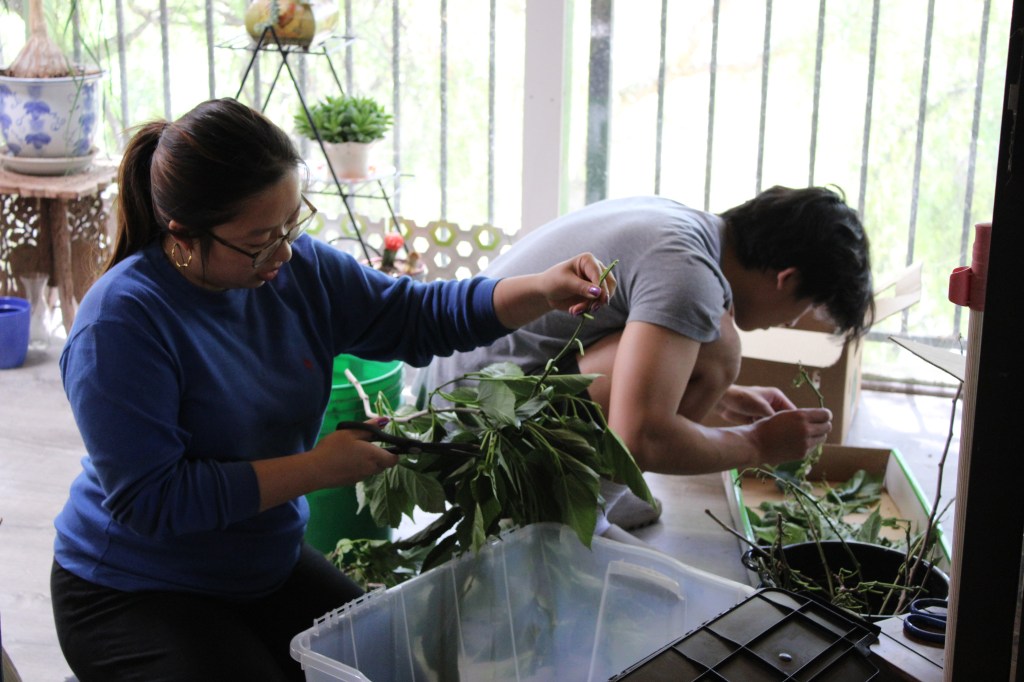 Enthusiasm was quickly replaced with utter astonishment as my brother and I were tasked to trim leaves from chopped branches. Not just from any plant but from a mulberry tree. And do you know what organism likes, shall I say LOVE, mulberry leaves? Silk worms!
