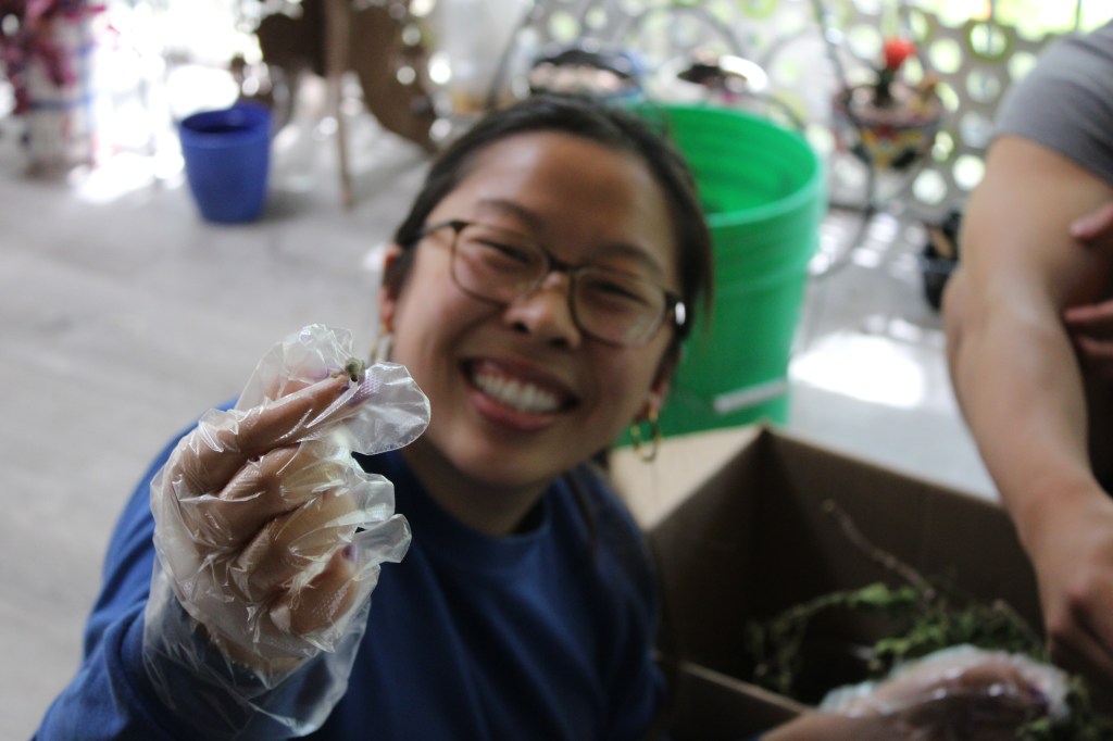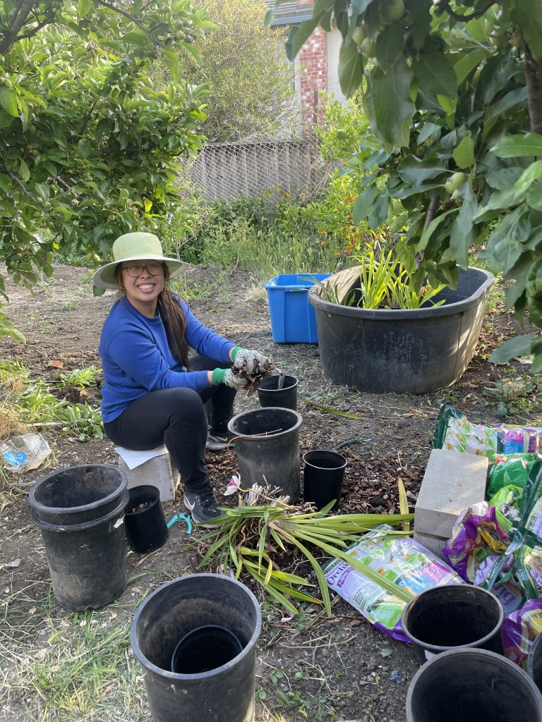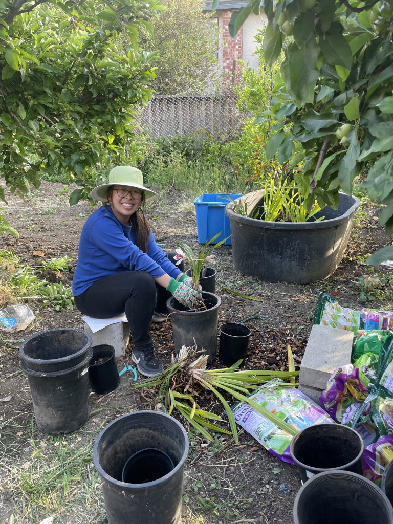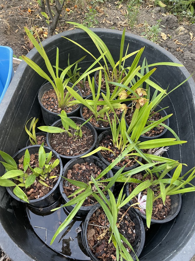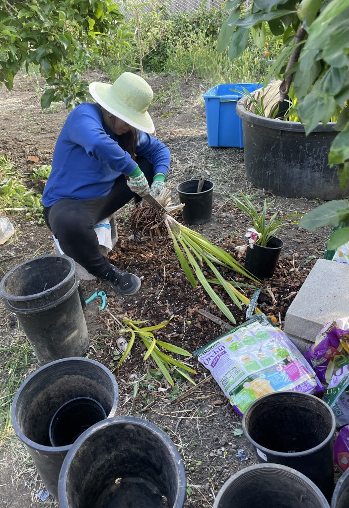 Many pots of transplanted orchids and belts of the chorus from the song “Take Me Home, Country Roads” later, it was dinnertime. By this time, my garden gloves were in literal shreds, my nails were caked with dirt, my shoes had Avena barbata (slender wild oat) displayed like croc decals, and tiny orchid bark splinters were embedded in my legs.