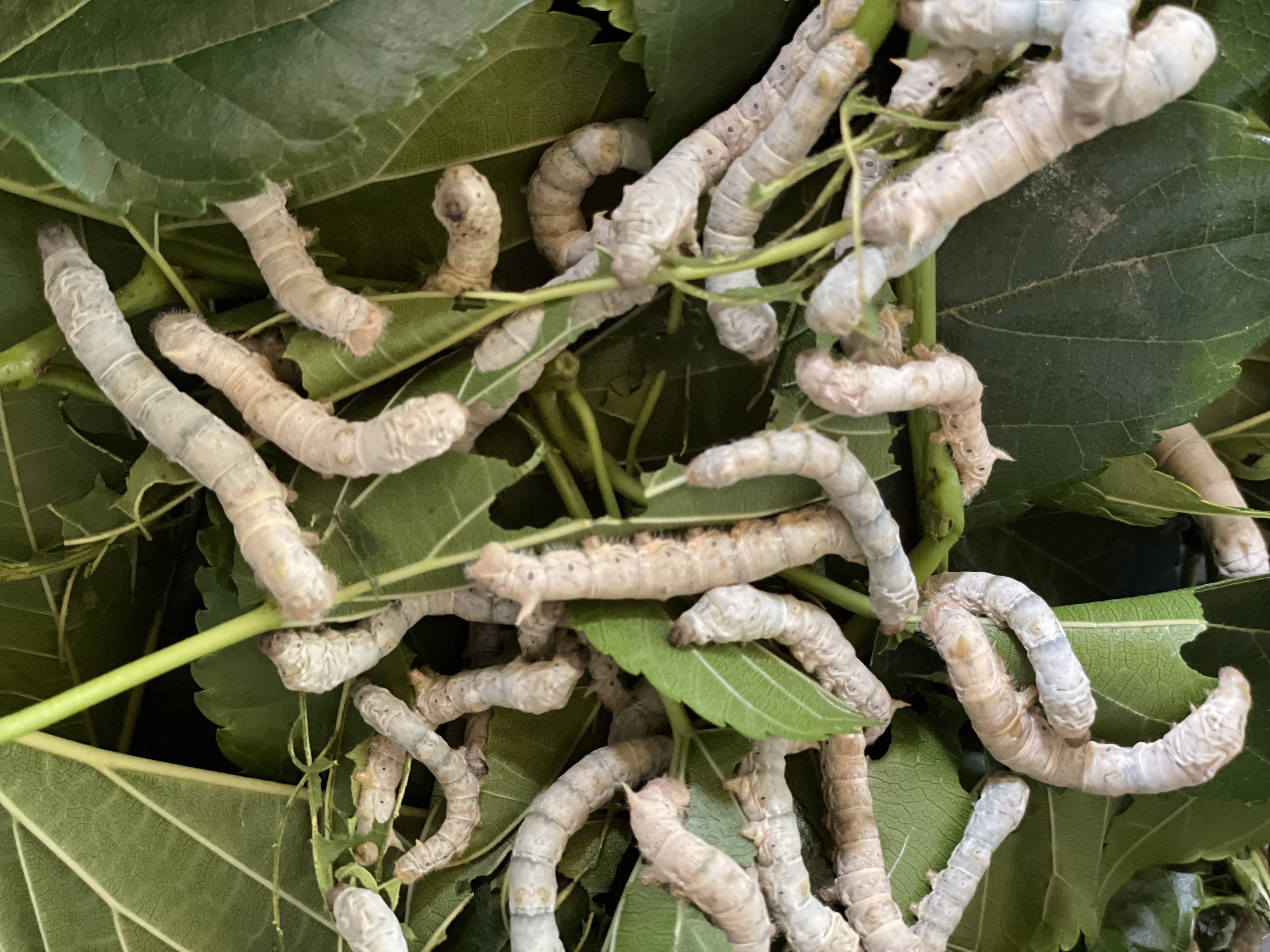 - Silk worms DEVOUR mulberry leaves!