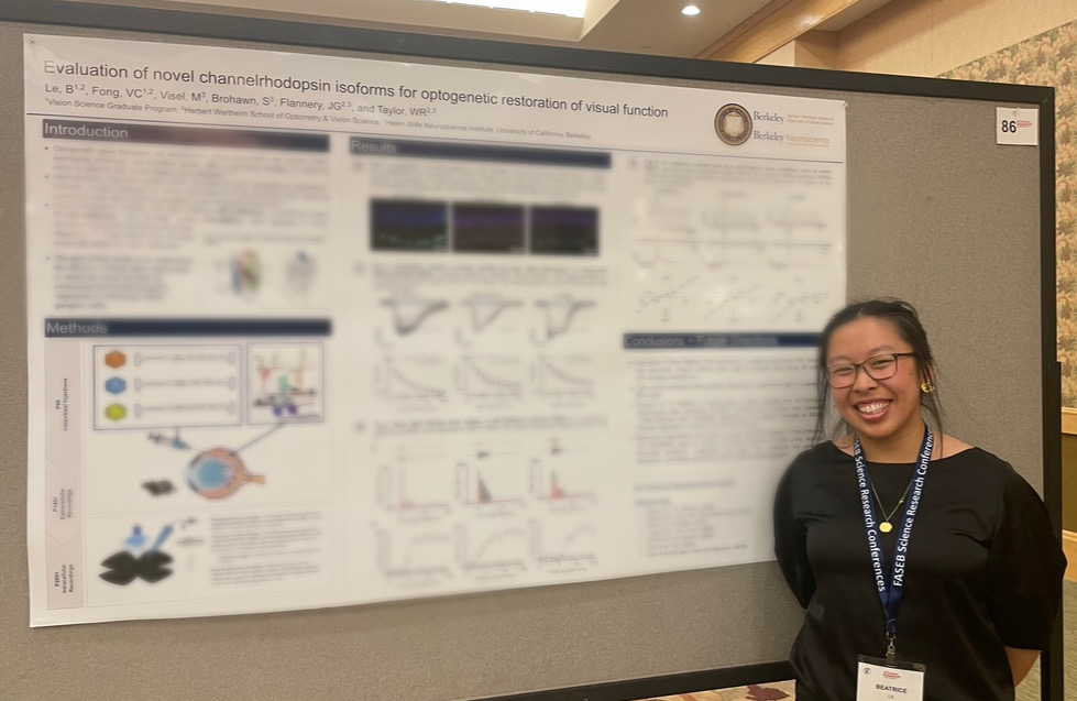 Evaluation of novel channelrhodopsin isoforms for optogenetic restoration of visual function. FASEB Retinal Neurobiology and Visual Processing (Poster). Southbridge, MA. June 20th, 2024.