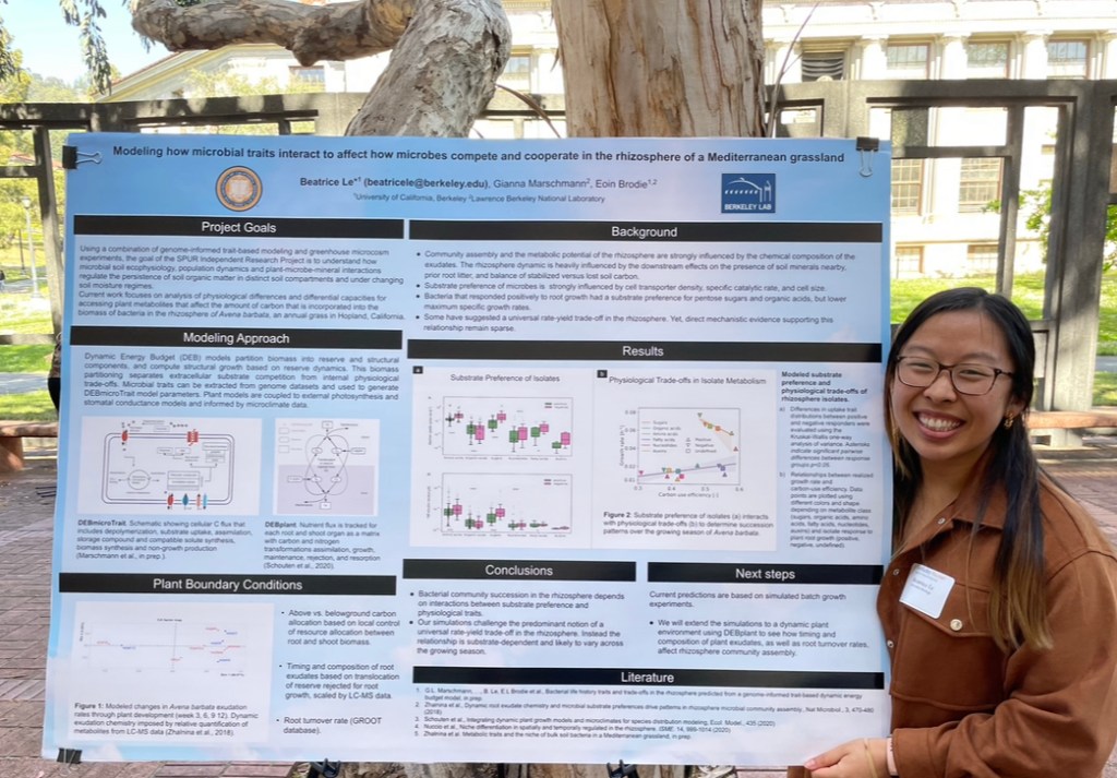 Modeling how microbial traits interact to affect how microbes compete and cooperate in the rhizosphere of a Mediterranean grassland. Rausser Research Showcase (Poster). Berkeley, CA. April 22th, 2022.
